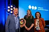 Jørn Oksnes mottok prisen fra konferanselederne Borghild T. Folkedal (t.h på bildet under) og Martina Bergh Svedahl på en fullsatt festmiddag på Hallingtreff.