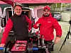 Tobias Mihelin og Markus Vammeli fra Milwaukee var godt fornøyd med besøketTo tilfredse herrer for dagen hadde tatt plass i telt utendørs og viste fram verktøy fra Milwaukee, populære produkter som kun kun selges gjennom grossist.